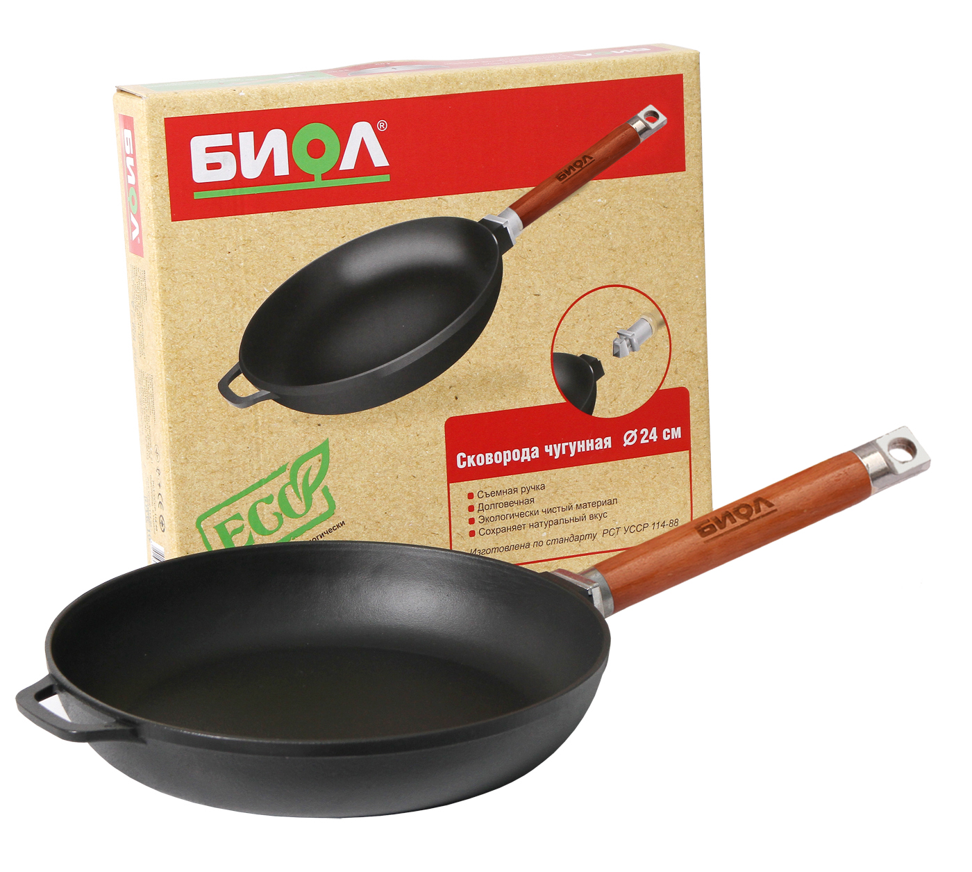Cast Iron Frying Pan/Skillet, Removable Handle, 28 cm